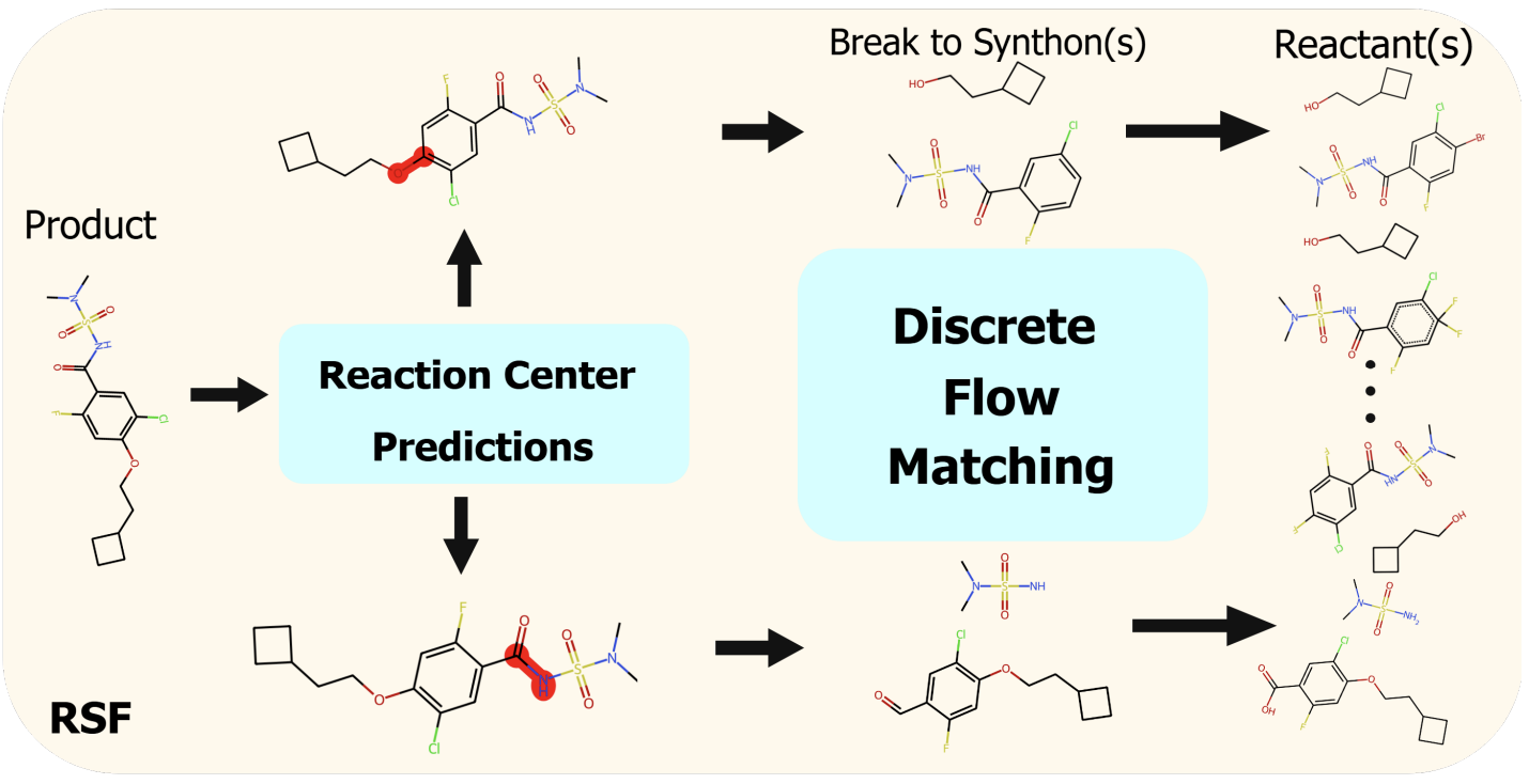 - NeurIPSRETRO SYNFLOW: Discrete Flow Matching for Accurate and Diverse Single-Step RetrosynthesisNeurIPS, 2025.